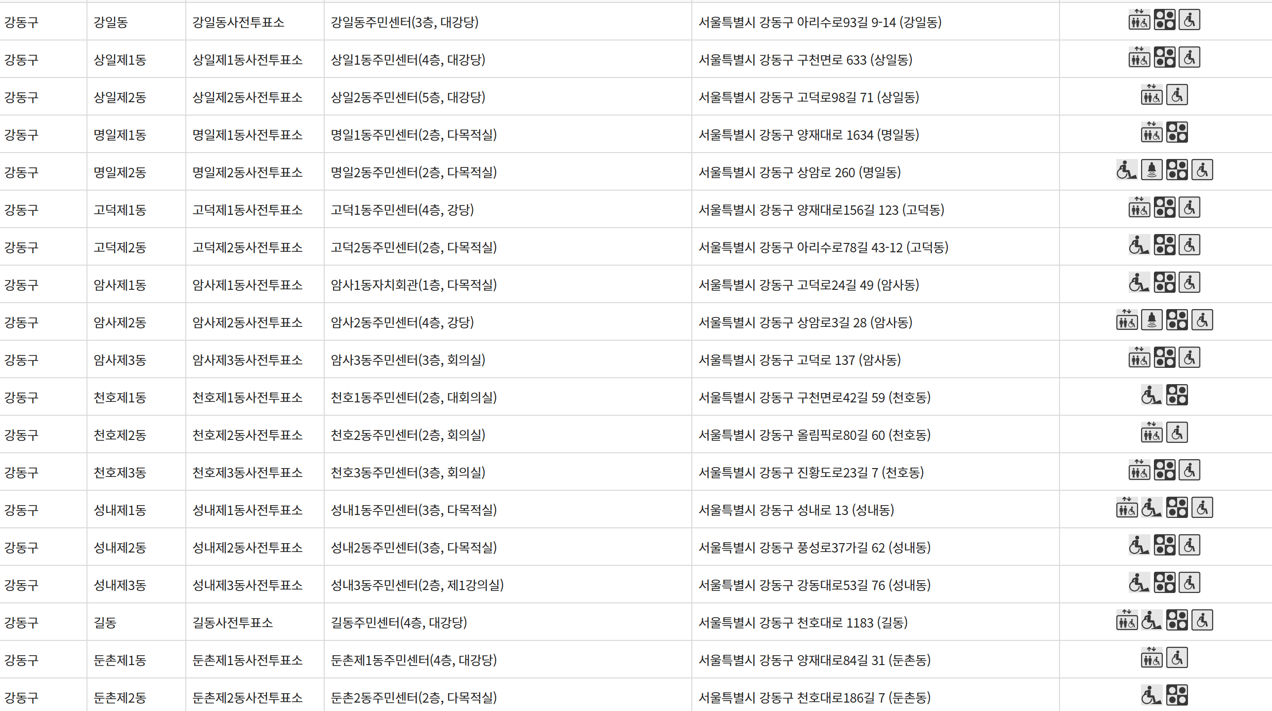 2025 사전투표 우리동네 바로가기 강동구 종로구 광진구